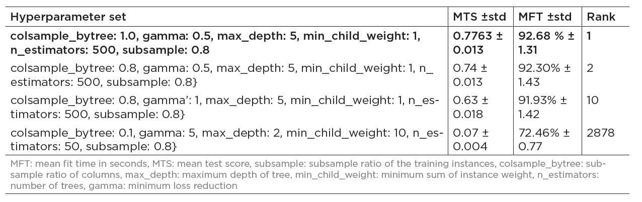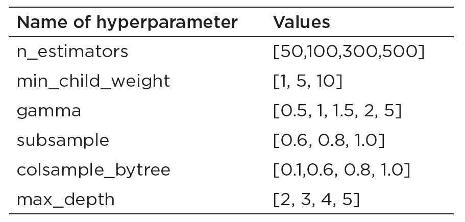 Table 1: Hyperparameter set for 5-fold cross-validation modelling with XGBoost classifier