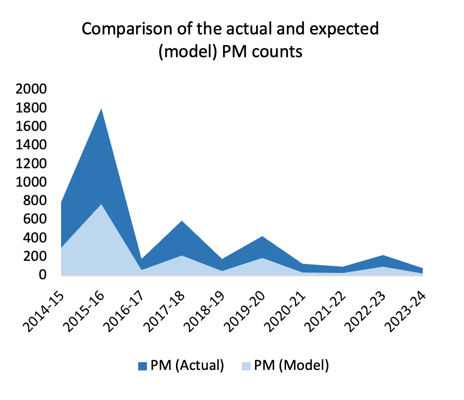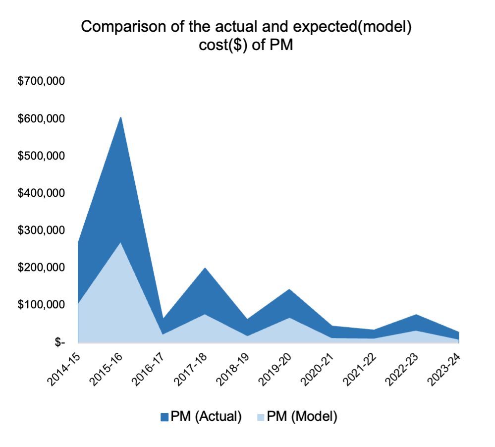 Figure 4: Preventative Maintenance (PM) cost analysis for financial years and materials