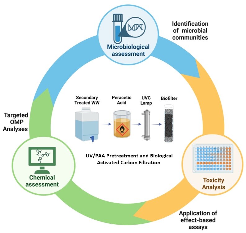 This combined UV/PAA-biofiltration method addresses key challenges in tertiary wastewater treatment, offering an efficient and sustainable solution for mitigating OMPs and reducing toxicity in treated effluents.